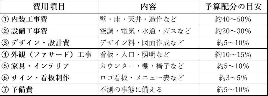 店舗リノベーションの費用は、大きく分けて次の7項目です。