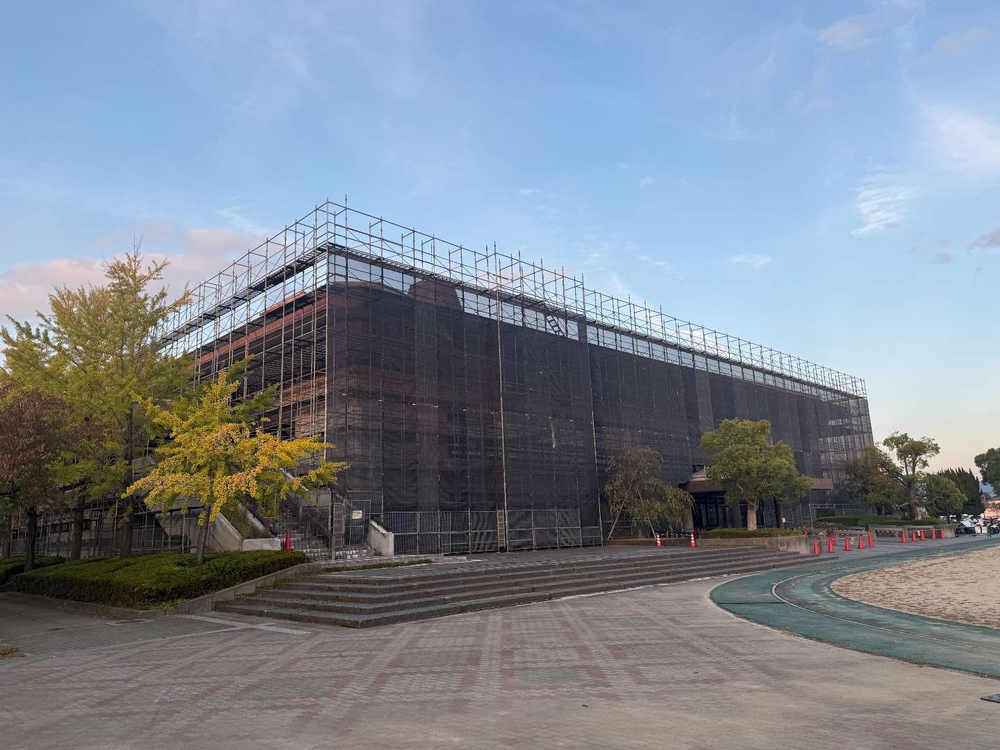 New 公共施設 屋根改修 建築工事 施工事例 京都府八幡市 市民体育館屋根改修工事 仮設工事 京都府八幡市の市民体育館の屋根改修工事がいよいよ本格的にスタートします。体育館全体を覆う強固な足場と仮設シートの設置が完了しました。 場所 京都府八幡市 前の施工事例 戸建て 京都府城陽市 H様駐車場区画線 次の施工事例 公共施設 京都府城陽市 市民体育館改修工事